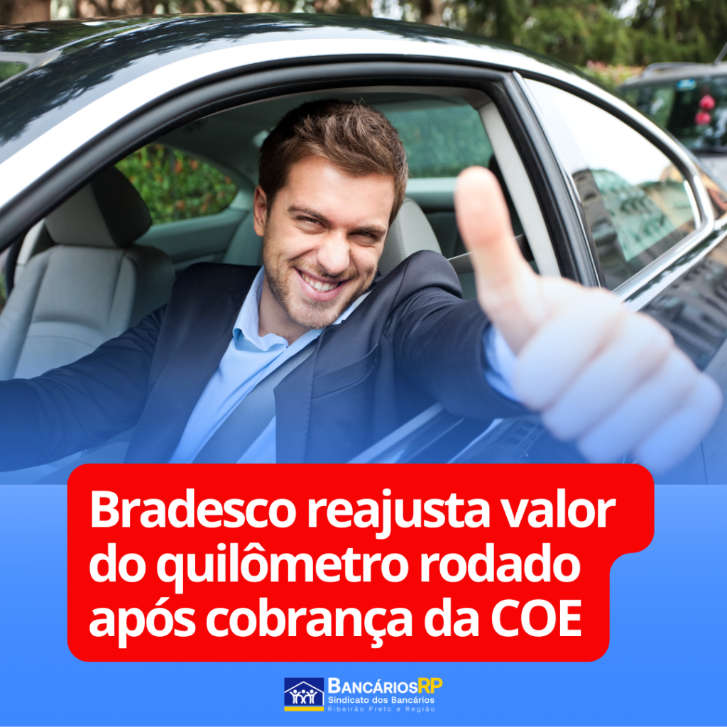 Os bancários e bancárias do Bradesco conquistaram mais um avanço. Após cobrança da Comissão de Organização dos Empregados (COE) do banco, a instituição anunciou, nesta segunda-feira (2), o reajuste do valor pago por quilômetro rodado aos gerentes que realizam visitas externas. O valor, que estava congelado desde dezembro de 2021, passou de R$ 1,02 para R$ 1,10.