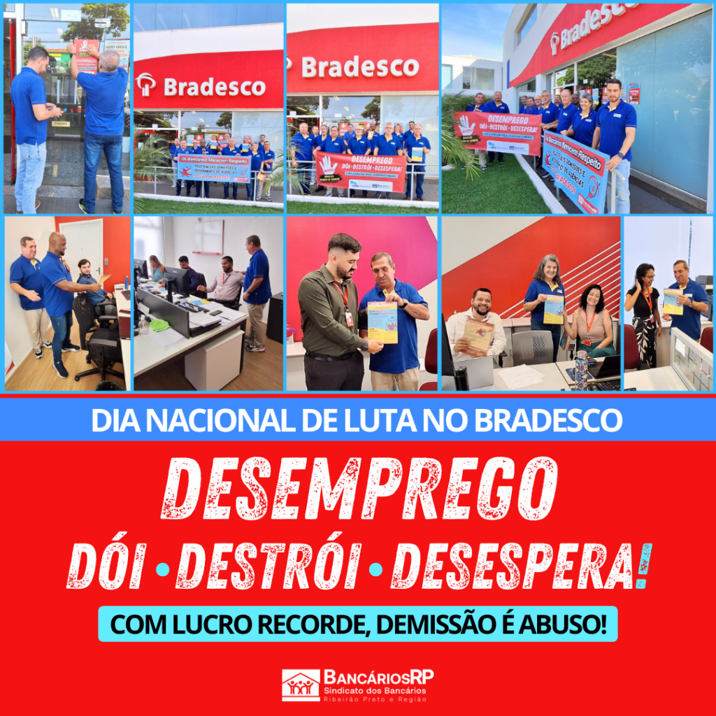 Bancários de todo o país realizaram, nesta terça-feira (17), o Dia Nacional de Luta contra as demissões no Bradesco. A mobilização, organizada pelo movimento sindical, teve como foco denunciar a eliminação de postos de trabalho promovida pelo banco.