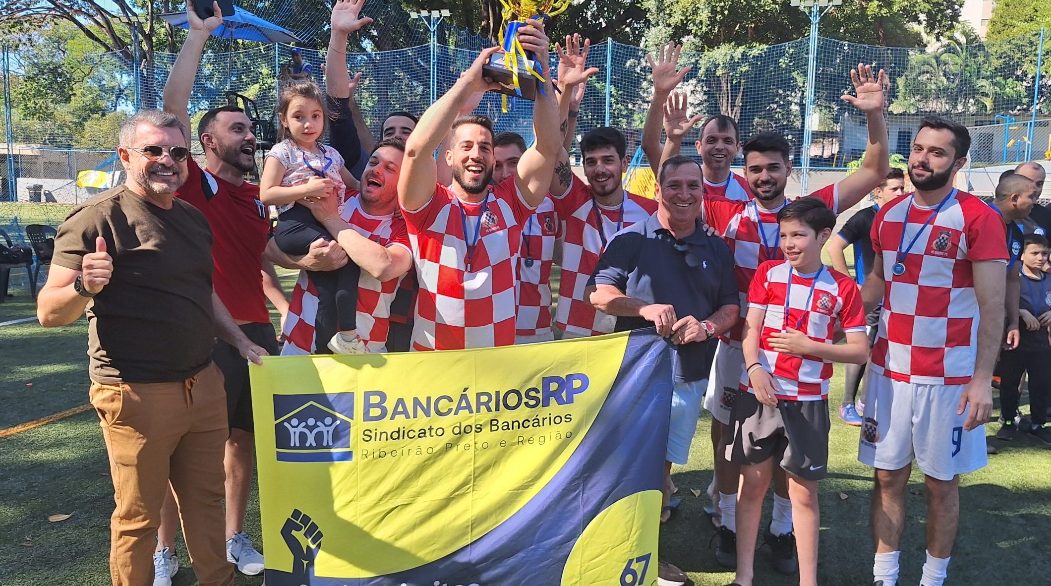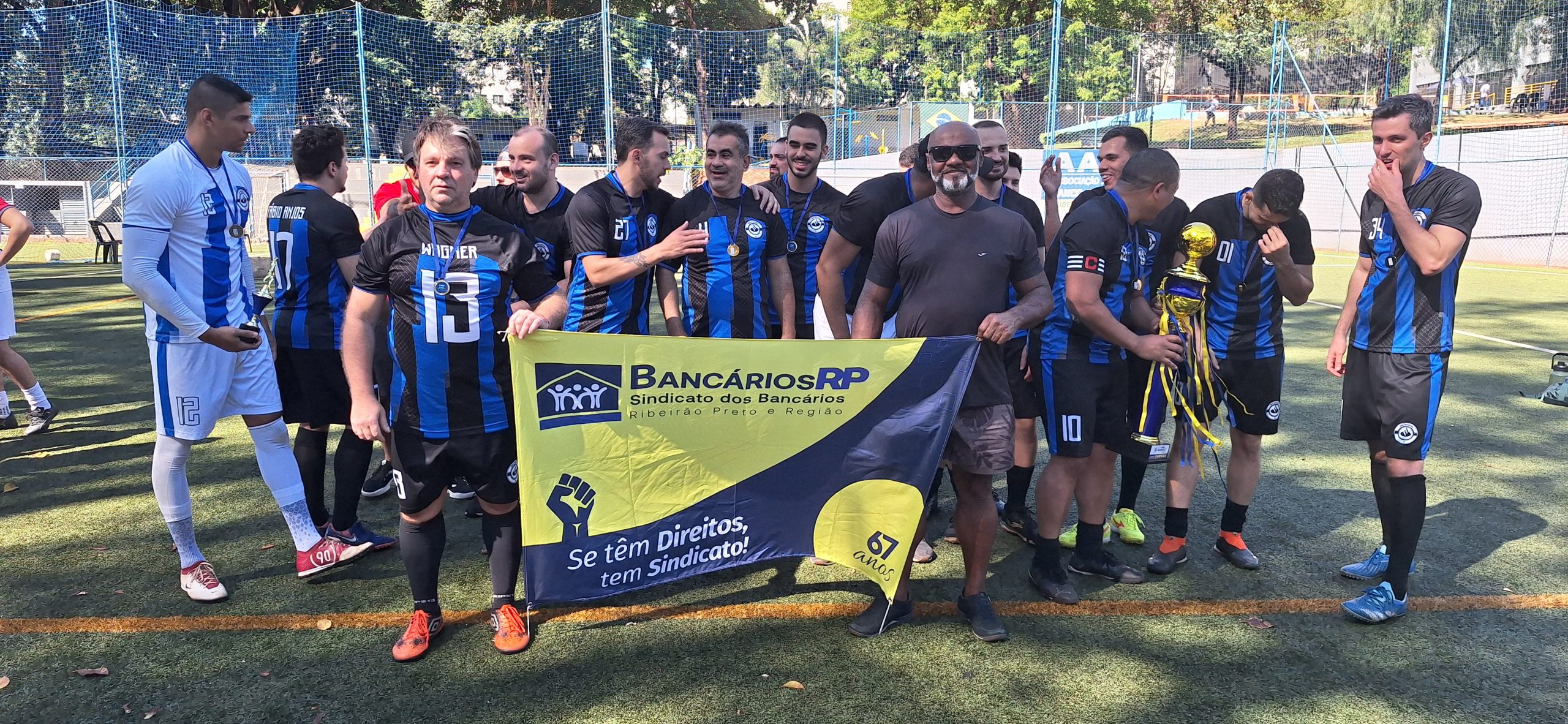 A manhã deste sábado (28) foi marcada por emoção, amizade e celebração durante a grande final da Copa AABB/Bancários de Fut7, promovida pelo Sindicato dos Bancários de Ribeirão Preto e Região. Mais que um evento esportivo, a copa se consolidou como uma verdadeira festa de integração, lazer e convívio da família bancária, reunindo atletas, familiares e amigos em um ambiente leve e acolhedor.